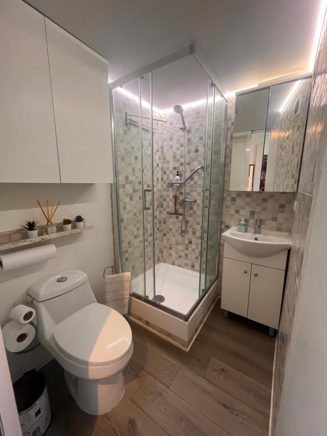 One-Bedroom Apartment. Featuring a private entrance, this apartment consists of 1 bedroom and 2 bathrooms with a shower. The fully equipped kitchen features a stovetop, kitchenware, an oven and a microwave. The apartment provides a flat-screen TV, a washing machine, a minibar, a wardrobe as well as city views. The unit offers 1 bed.